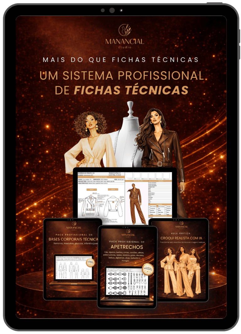+100 fichas técnicas, bases corporais, aula de IA e apetrechos prontos para você criar, adaptar e produzir com mais agilidade.