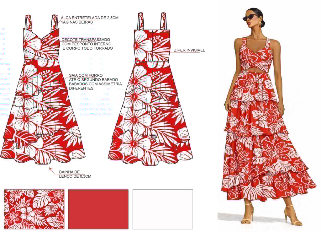 Com Inteligência Artificial você da vida a suas coleções, coloca estampa, cores , muda poses, escolhe modelos , tudo com poucos comandos.